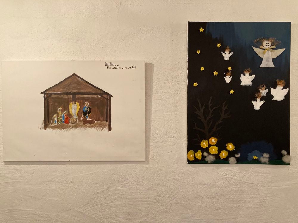 No er kunstverka hengt opp, og skal henge i våpenhuset og kyrkjelydssalen i Sund kyrkje fram til midten av januar. Så ta deg gjerne ein tur innom i løpet av jula! Her er mykje flott å sjå.