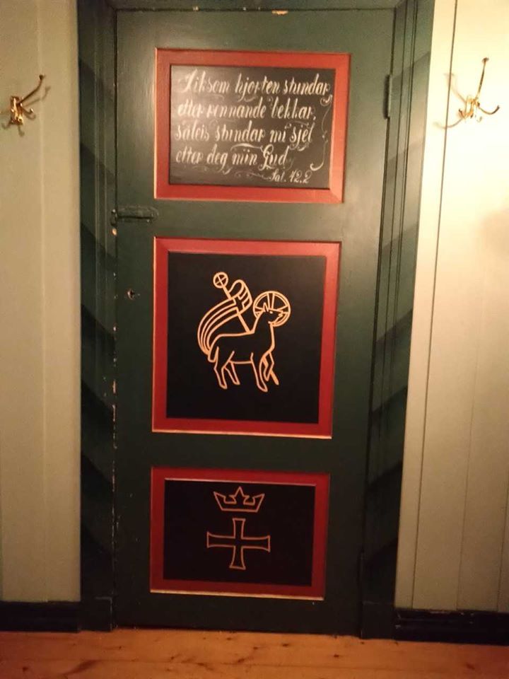 24.4.2020Volbu 24. april. På dei doble dørene inn til lysa er det blide av evangelistane.