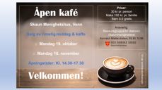 5.11.2020I henhold til oppdaterte smittevernråd, utsettes den planlagte Åpen kafé på Venn inntil videre