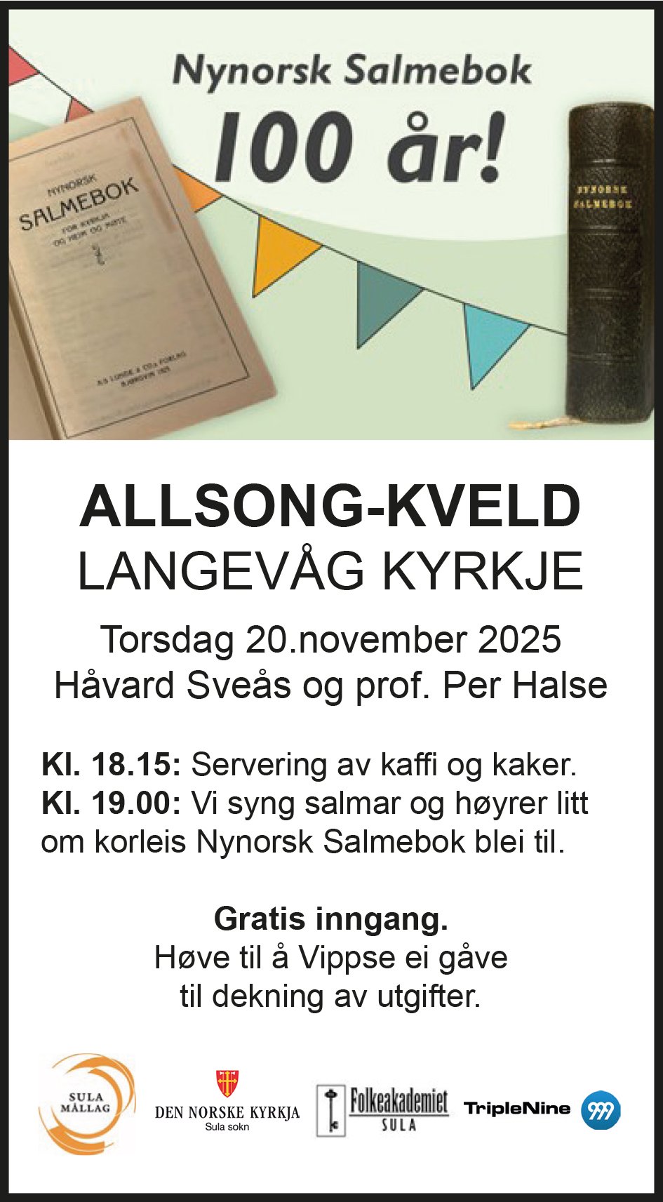 I 2025 markerer vi 100-årsjubileum for Nynorsk salmebok.