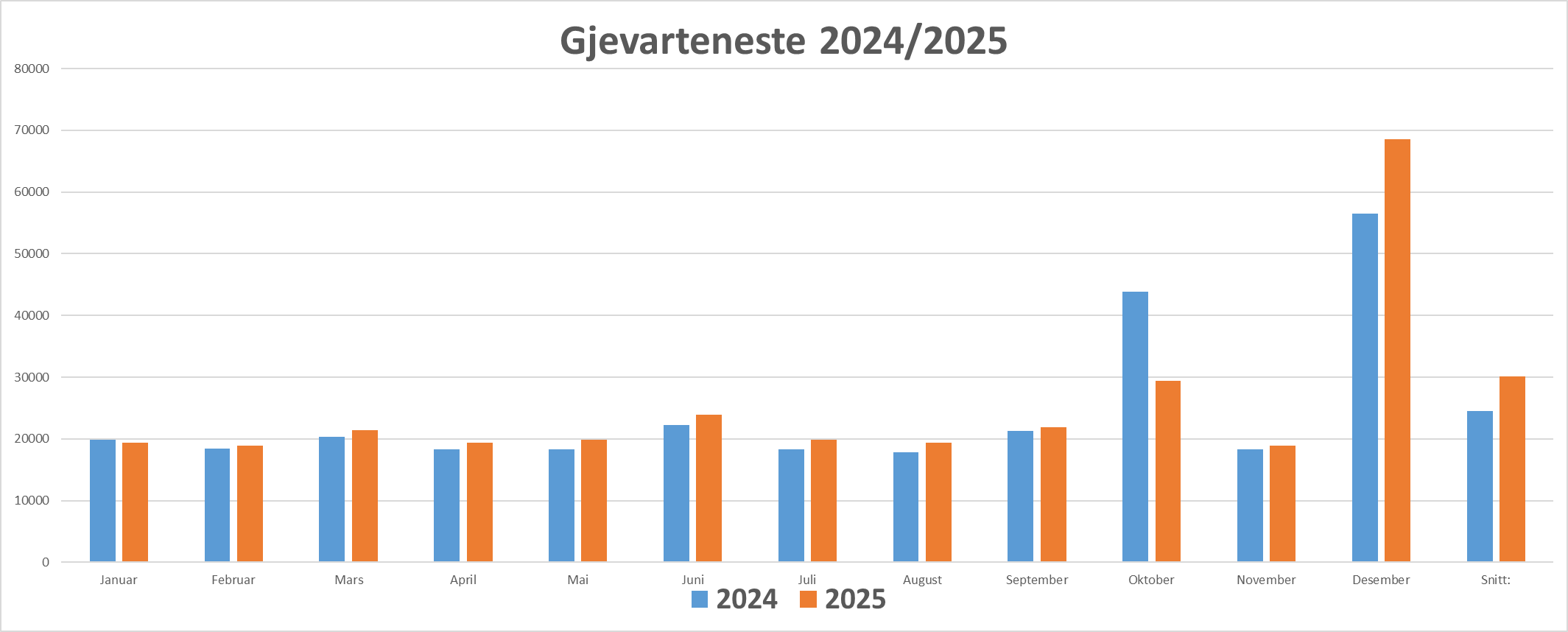 Det er om lag 28 faste givarar. i 2025 kom det inn tett over kr. 25000 i månaden i snitt. Det er ei auke frå 2024, som kjem godt med.