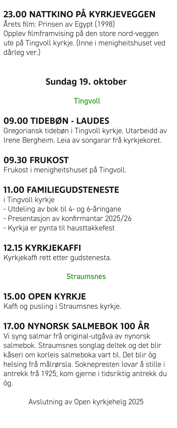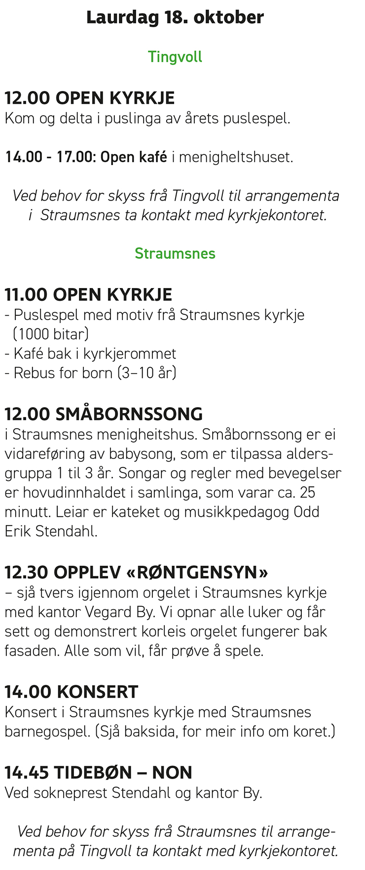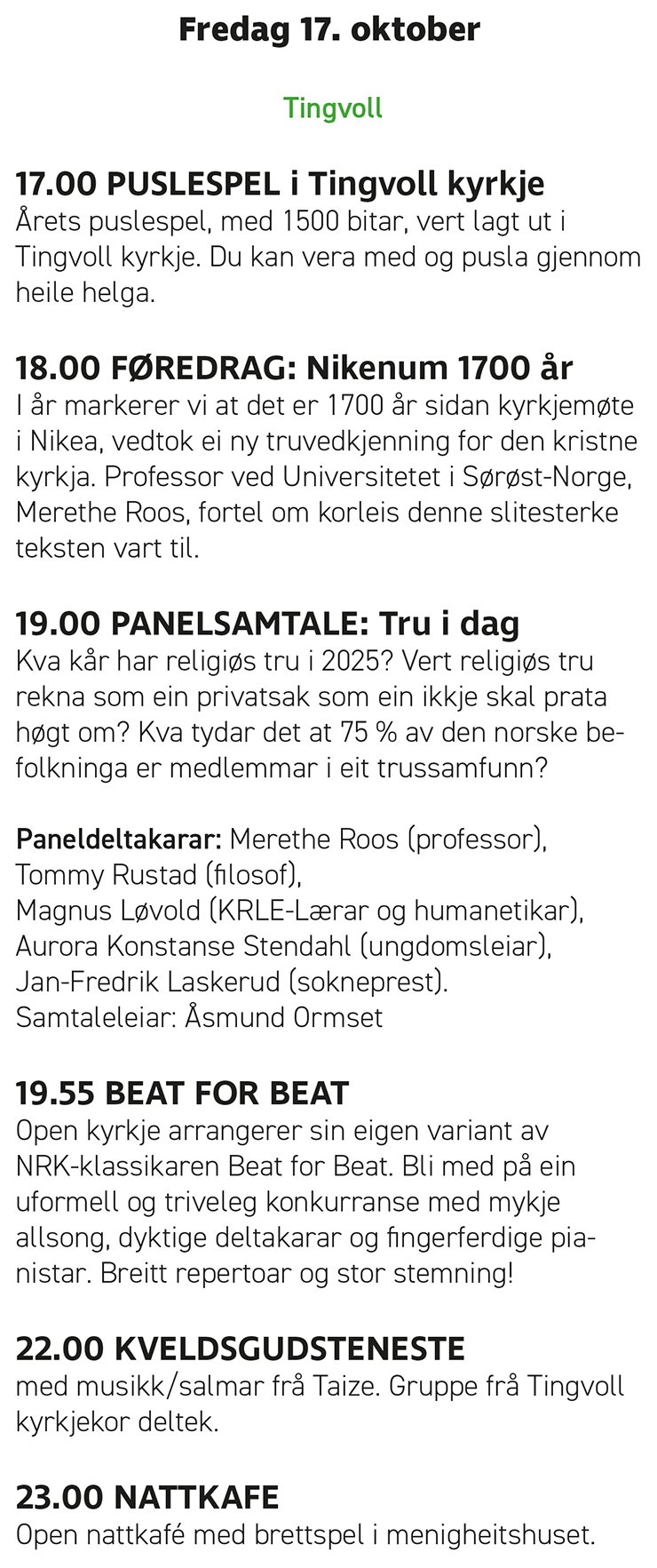 Årets kyrkjehelg tilbyr eit variert program for både store og små. Konsertar, føredrag, puslespel, jubileum og mykje meir. Les meir i programmet.