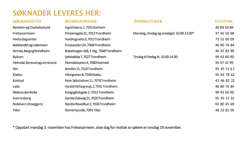 - Husk å ta med ID-kort, og gjerne dokumentasjon på inntekt og eventuelle vedtak fra NAV. Dette hjelper oss å fordele midlene rettferdig.